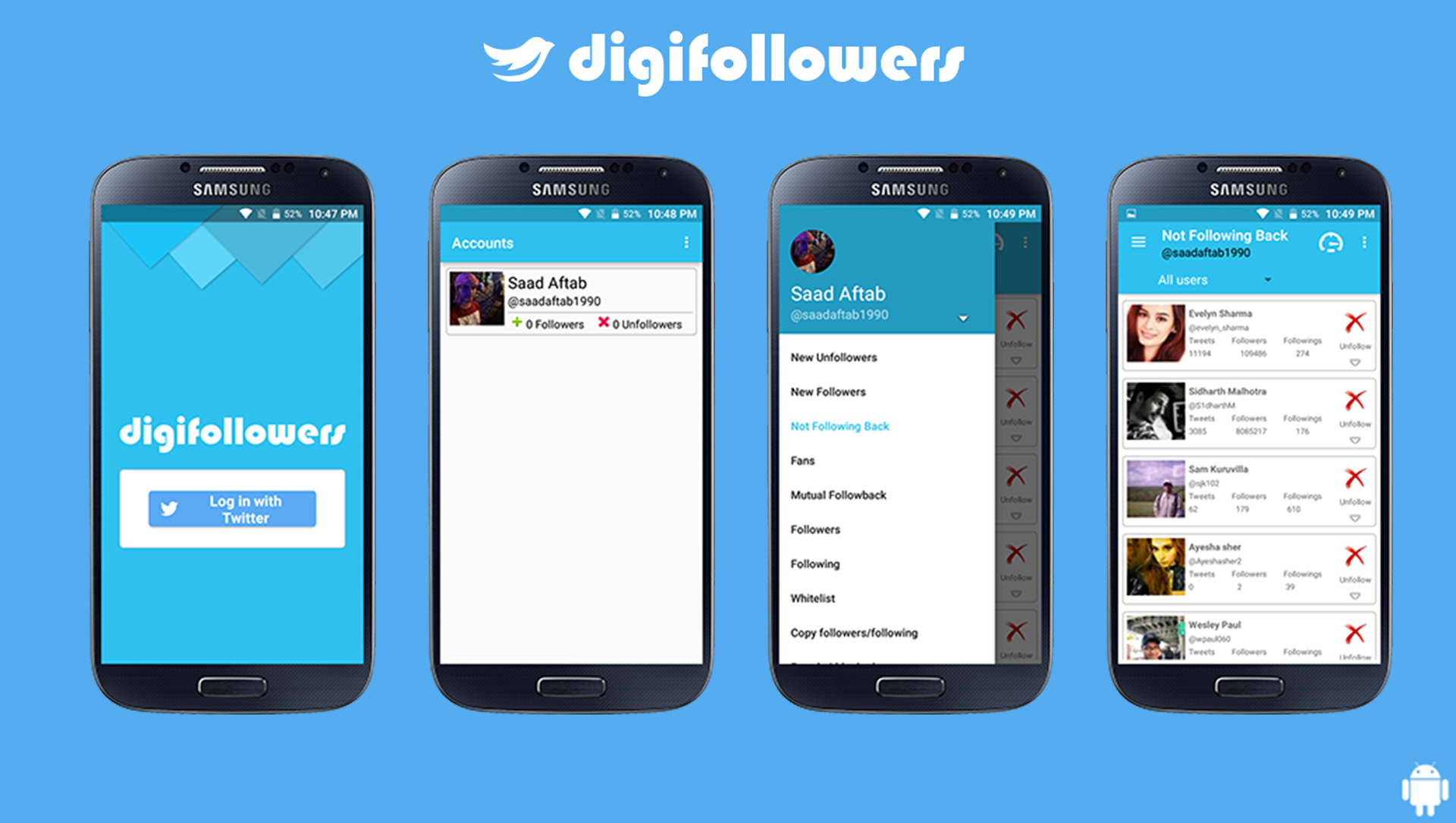DigiFollowers was my first ever app when I started learning Android. Basically this app is a hack for Twitter. I made it just for fun & for learning purpose. In this app you can do all those stuff what Twitter doesn't provide.